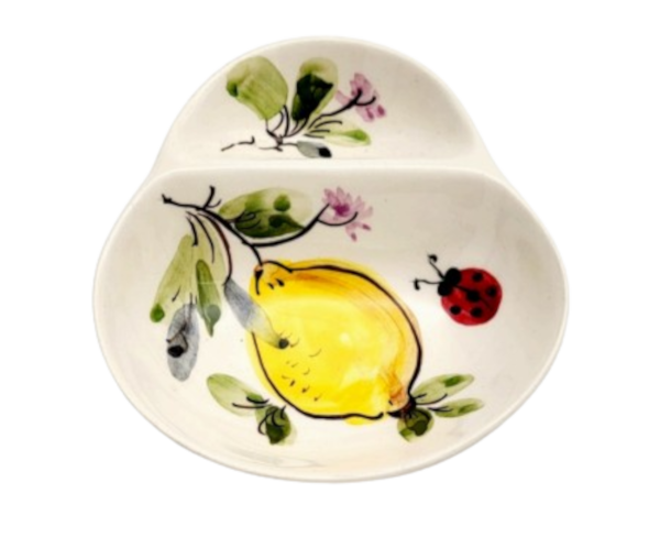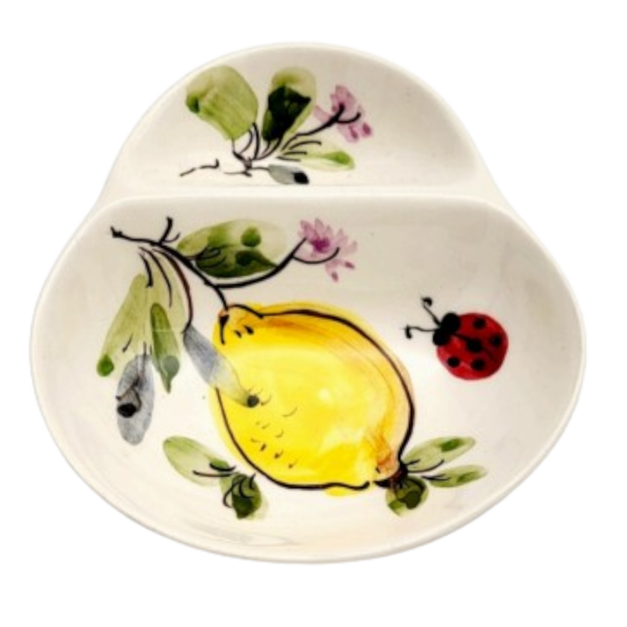 Azeitoneira em faiança pintada à mão, decoração Limões, disponível em dois tamanhos, selecione o tamanho pretendido na opção de escolha abaixo