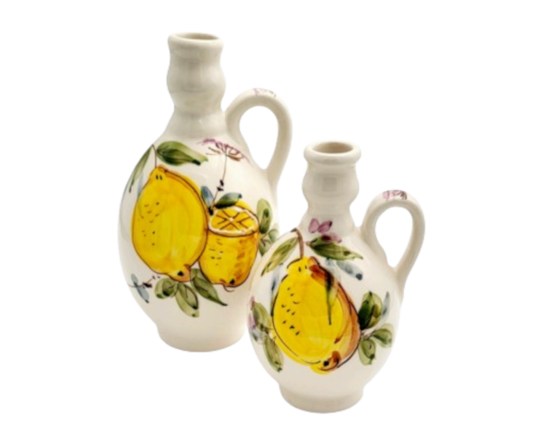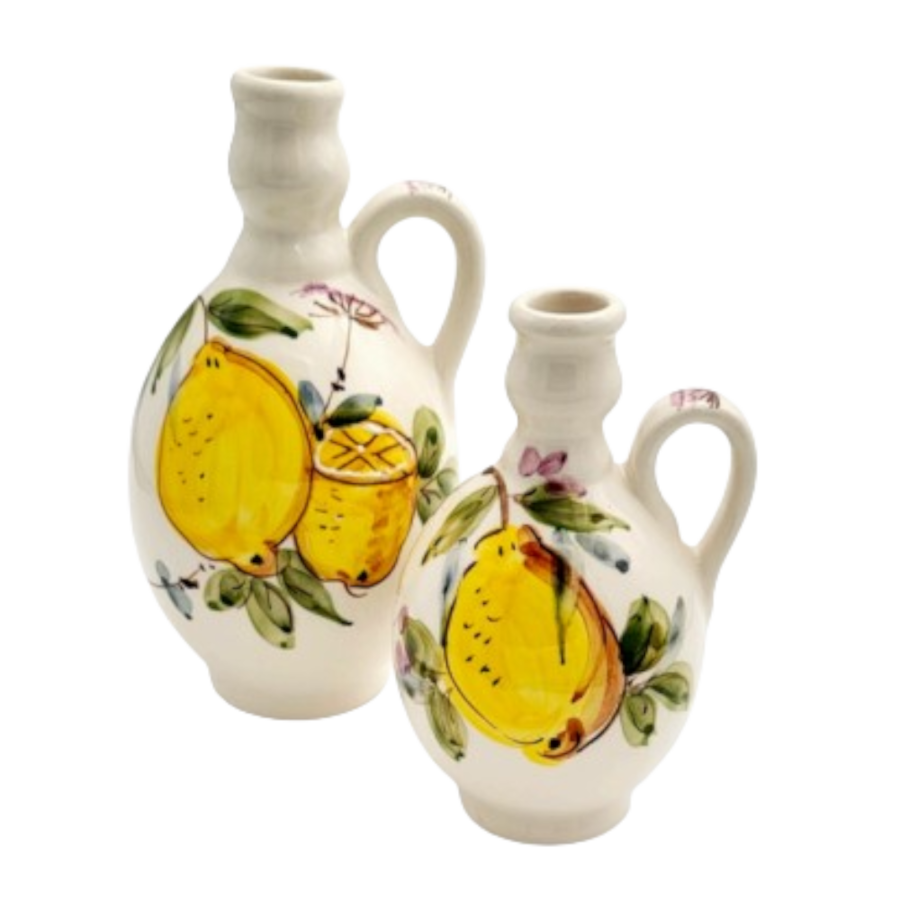 Garrafa em faiança pintada à mão decoração Limões, disponível em dois tamanhos, selecione o tamanho pretendido na opção de escolha abaixo: