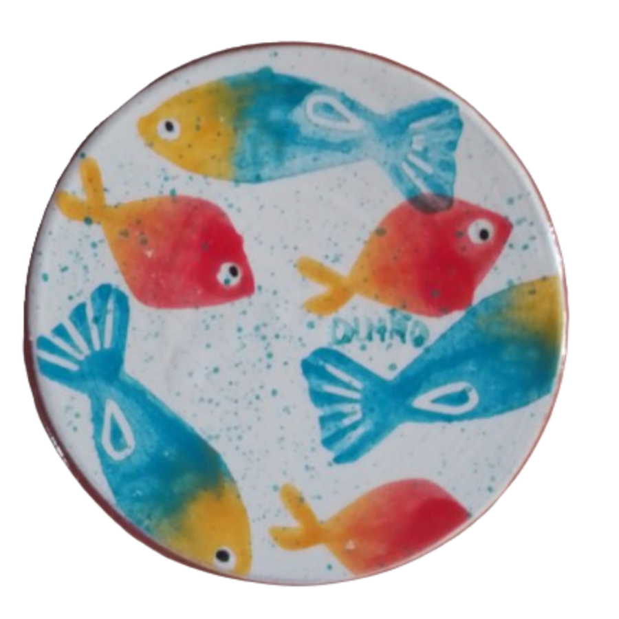 Base de copo em cerâmica pintado à mão decoração peixinhos