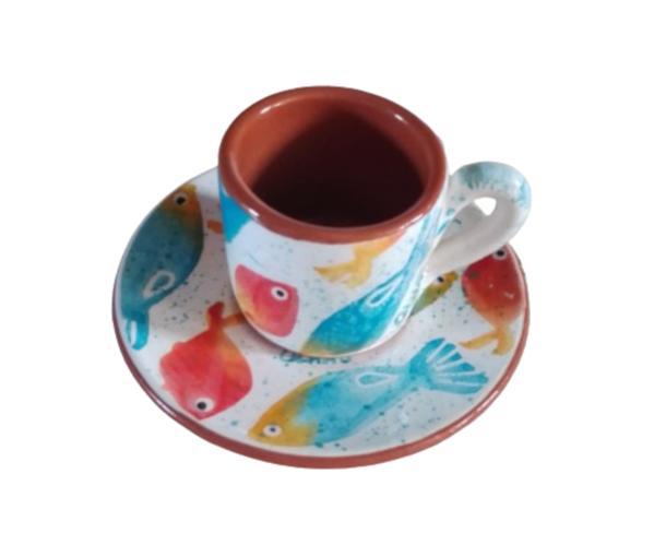 Chávena de café com bordo em cerâmica pintada à mão decoração peixinhos (52)