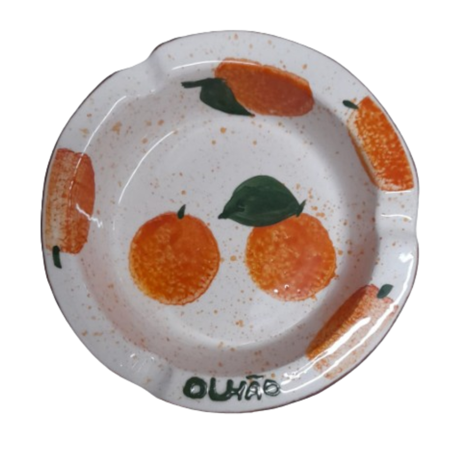 Cinzeiro nº1 com aba em cerâmica pintado à mão decoração Laranjinha