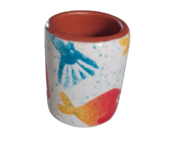 Copo em cerâmica pintado à mão decoração peixinhos, disponível em vários tamanhos, selecione o tamanho pretendido na opção de escolha abaixo:
