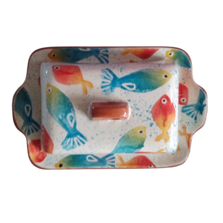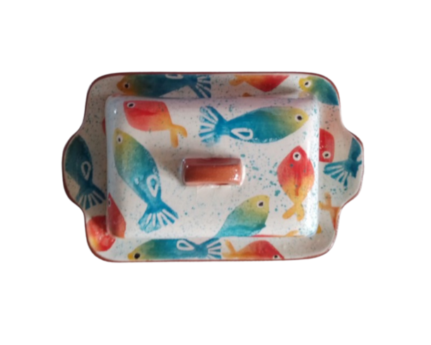 Manteigueira em cerâmica pintada à mão decoração peixinhos (52)