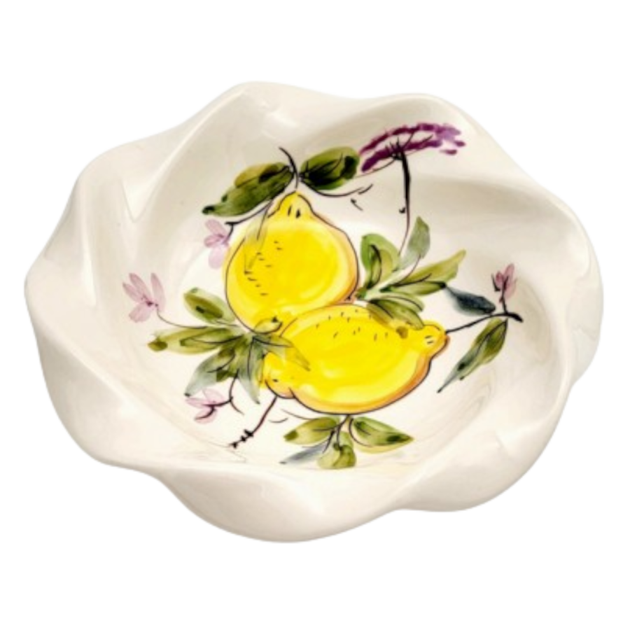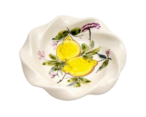 Prato taça em faiança pintado à mão, decoração Limões