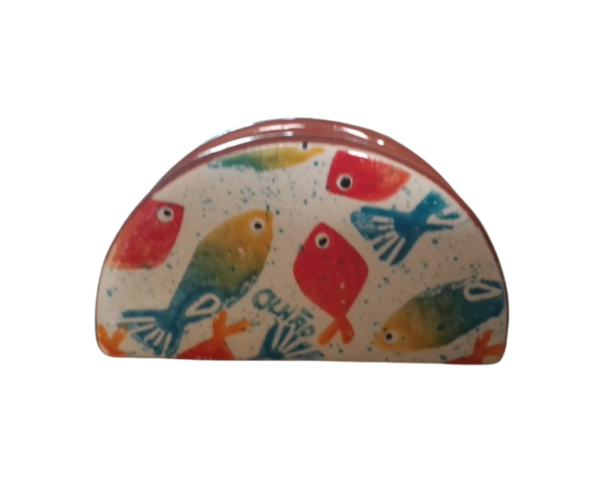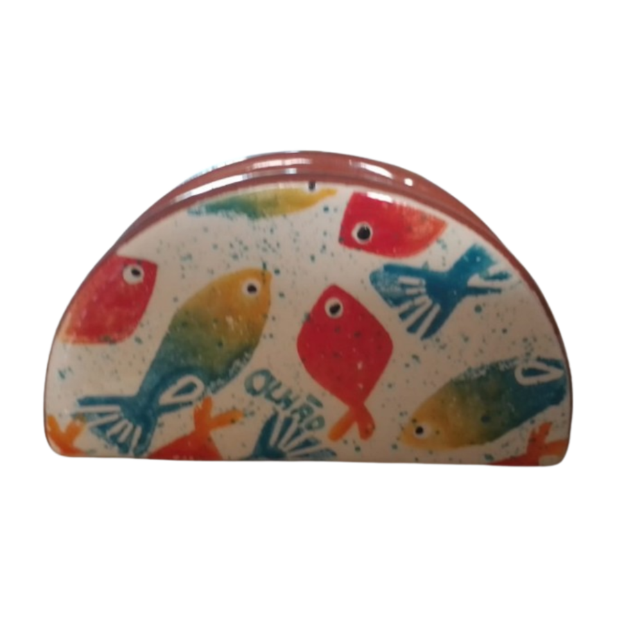 Suporte guardanapos em cerâmica pintado à mão decoração peixinhos (52)