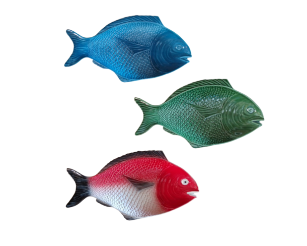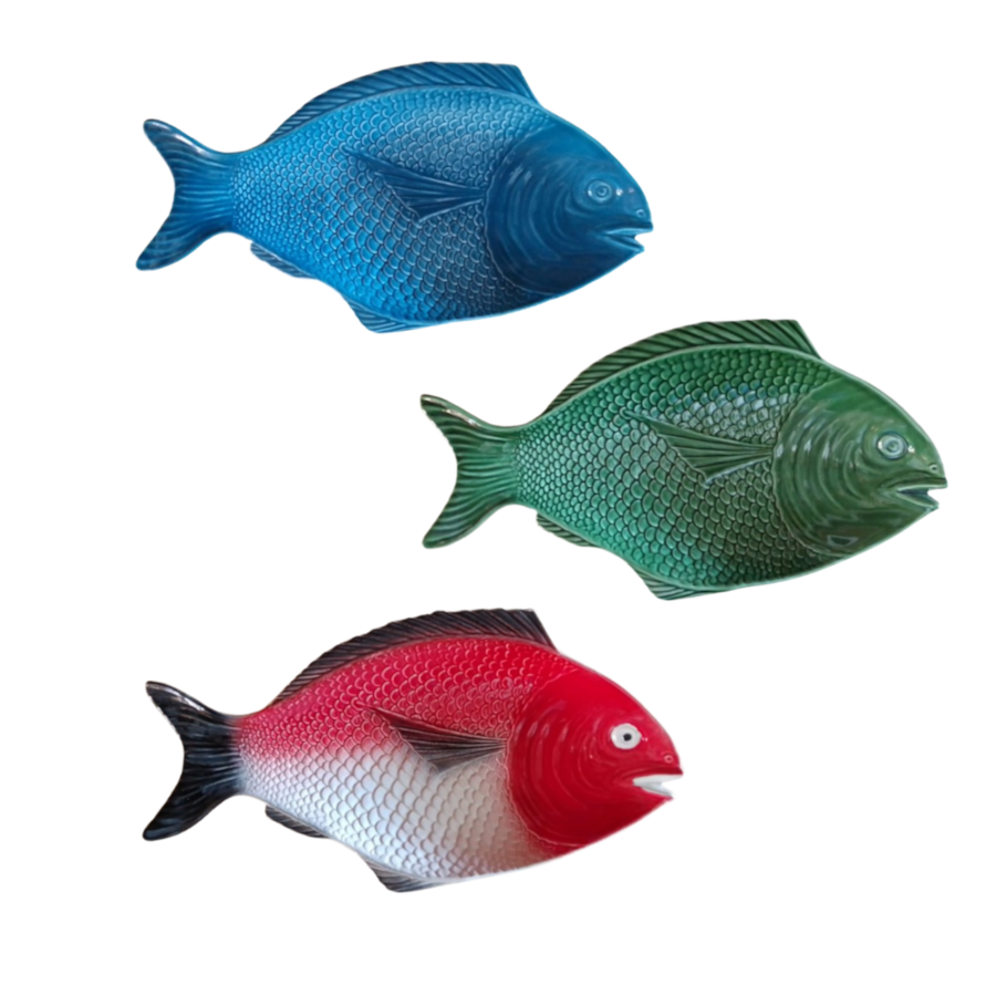 Travessa peixe em faiança pintada à mão, disponível em várias tonalidades, selecione a tonalidade pretendida na opção de escolha abaixo: