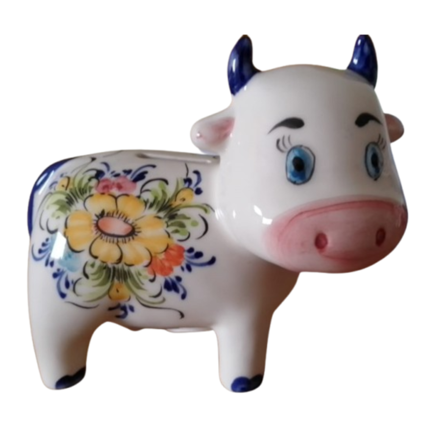 Vaquinha mealheiro em faiança pintada à mão
